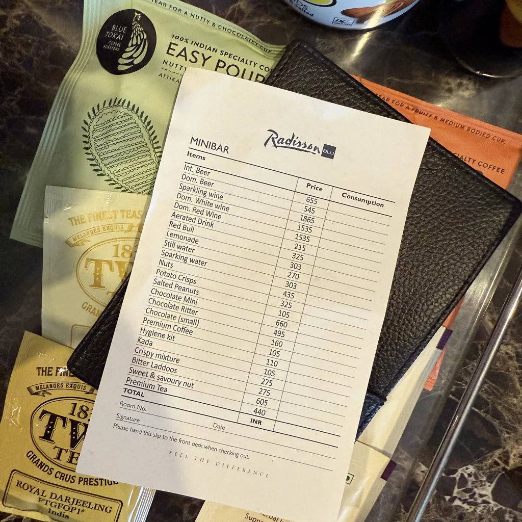 The hotel provides complimentary unlimited filtered bottled water in the room, which is appreciated but It is a shame that Radisson is not providing bottled water same as other luxurious 5 stars hotels that I have visited during my trip to India. Pricing for additional water and certain items can feel high.