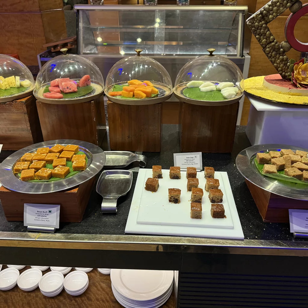 There was a wide choice of dishes, including both Indian and international options. Whether you prefer something light like fruit and yoghurt or something more filling, you will find suitable choices.