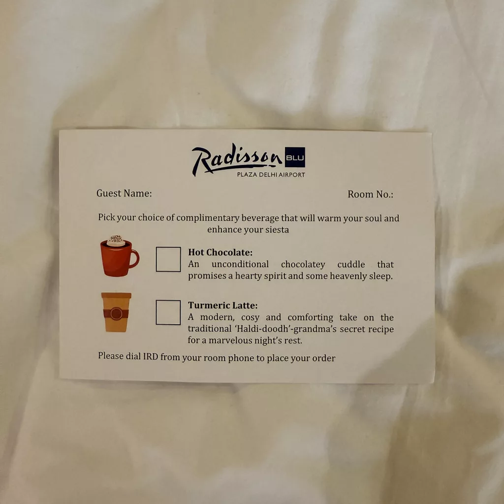 This is a charming and thoughtful addition, especially for a short transit stay. After a long journey, a warm drink delivered to your room feels comforting and personal. It adds a sense of hospitality that goes beyond basic service.